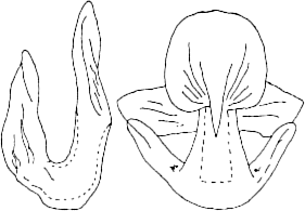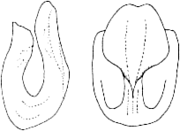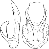 Aedeagus sehr breit, deutlich abgesetzter, schmalerer Schaft, Löffel schaufelförmig (Abb. 3 und 4) | 3 | ![]() |