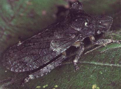 | Hintertibien nach außen blattartig verbreitert, Pronotum jederseits mit ohrförmigem Fortsatz, Gesamtlänge 13-18 mm Ledrinae (Ledra aurita) | Namen, die in Klammern hinter den Gattungen aufgeführt sind,